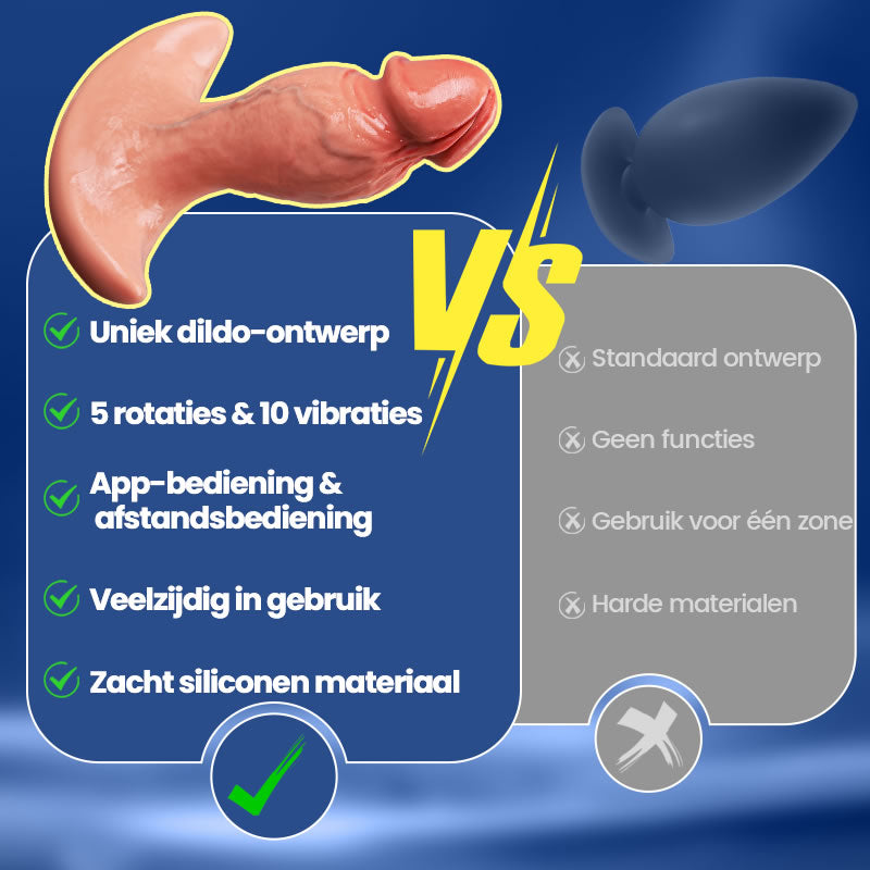 360°-rotatie over de volledige schacht — niet alleen de tip — zorgt voor stimulatie rondom. Tien vibratiemodi worden gecombineerd met de draaiende schacht voor gelaagd, intens genot bij elk gebruik.