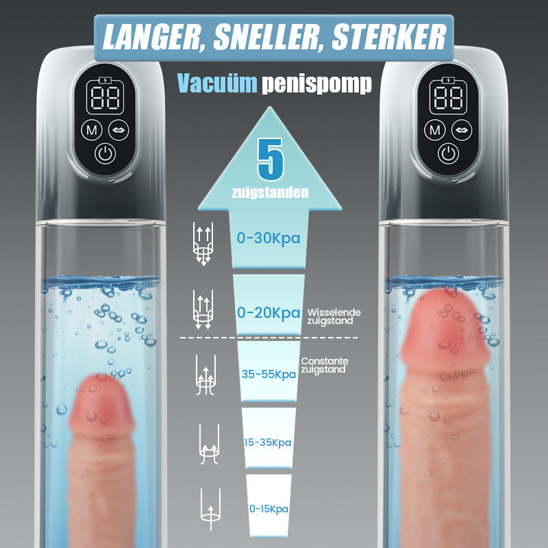 Terwijl je de 5 zuigstanden en 6 trainingsinstellingen verkent, voel je de progressieve veranderingen in drukniveaus, speciaal ontworpen om uithoudingsvermogen en kracht op te bouwen. Bij elke sessie verbetert de gecontroleerde vacuümdruk de bloedcirculatie, wat geleidelijk leidt tot sterkere erecties en verbeterd uithoudingsvermogen na verloop van tijd. Het heldere LED-display houdt je op de hoogte van de huidige druk en terwijl je de metingen van de cilinder bekijkt, zul je versteld staan van de visuele resultaten. Deze combinatie van op water gebaseerde stimulatie en druktraining helpt niet alleen bij ontspanning, maar ook bij het opbouwen van vertrouwen voor toekomstige intieme ontmoetingen.