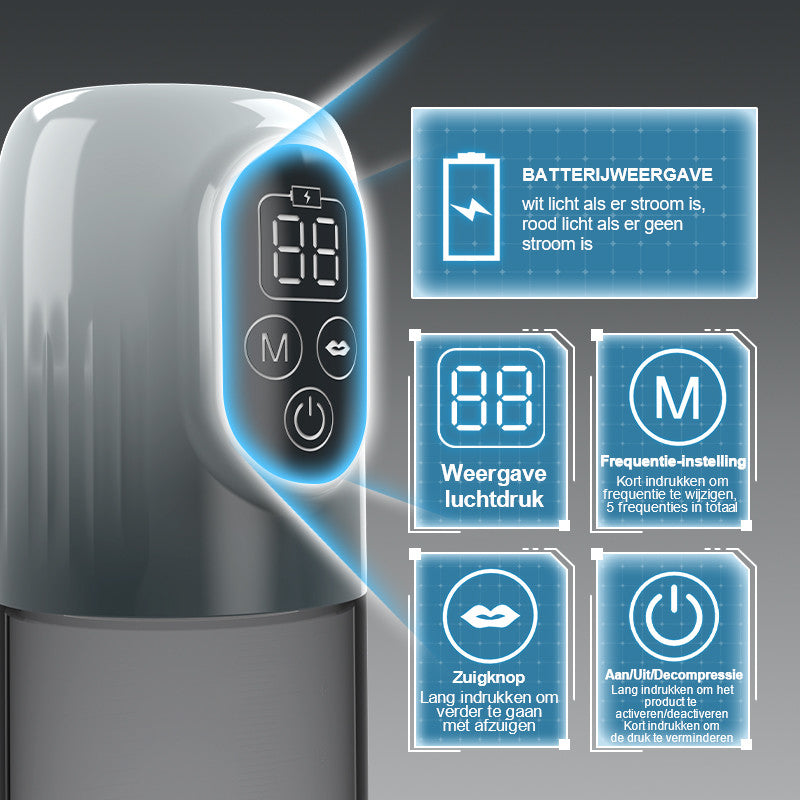 5 zuig-, 6 trainingsmodi en 4 drukniveaus voor meer uithoudingsvermogen.